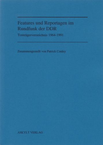 Tonträgerverzeichnis der DDR-Features. 2. Aufl. Berlin: Askylt, 1999. (Cover & Vorwort)